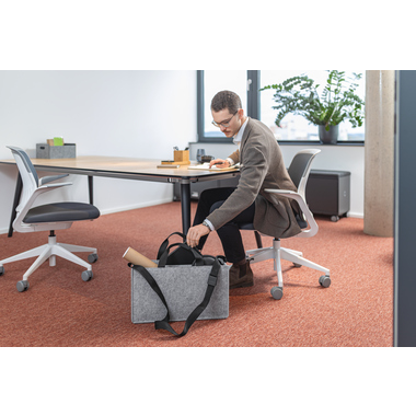 Mobil & praktisch: Leichte Desk Sharing Tasche zum Verstauen und Transportieren von Büroutensilien. Greifen Sie zu jeder Zeit unabhängig vom Arbeitsort auf Ihre persönlichen Arbeitsmittel zu. Optimale Größe für jeden gängigen (Locker-)Schrank oder ein Schließfach. Sehr sicherer Stand mit und ohne Inhalt durch breiten Boden.